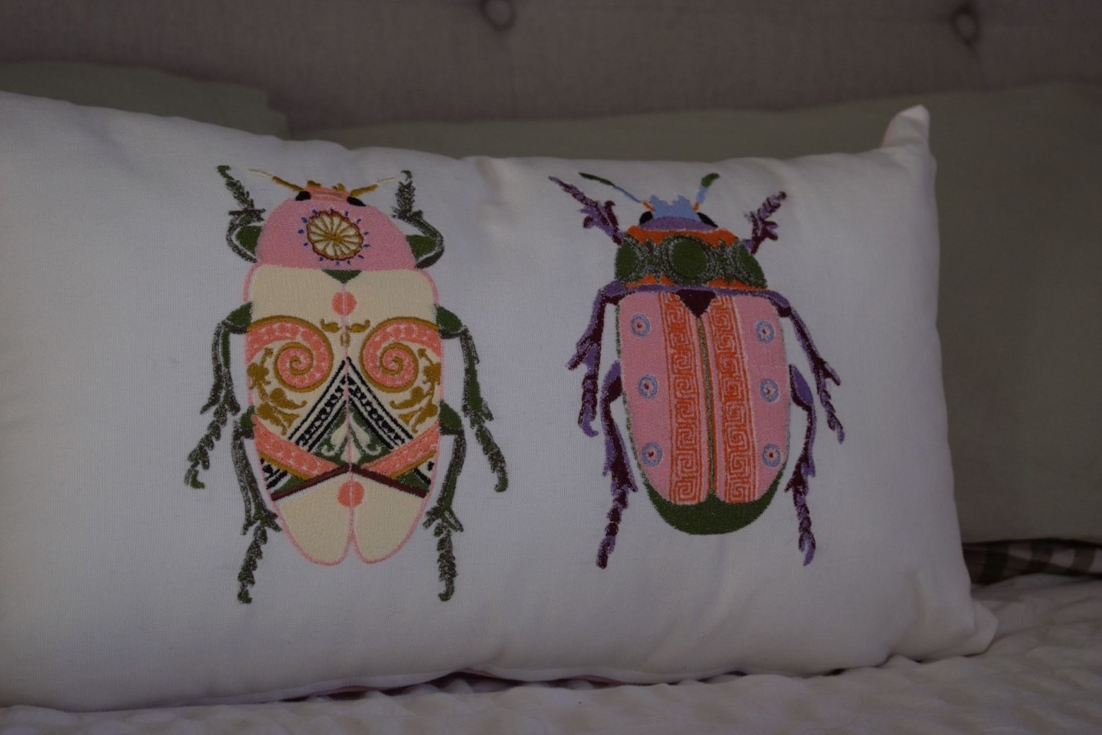 Add an unexpected touch of detail to your interior with this handcrafted embroidered beetle cushion cover. Inspired by the natural symmetry and intricate forms of beetles, the design is stitched with precision and rich colour onto a soft grey cotton canvas. Graphic yet organic, this cushion offers a subtle statement piece that brings texture, curiosity and character to sofas, armchairs or beds.