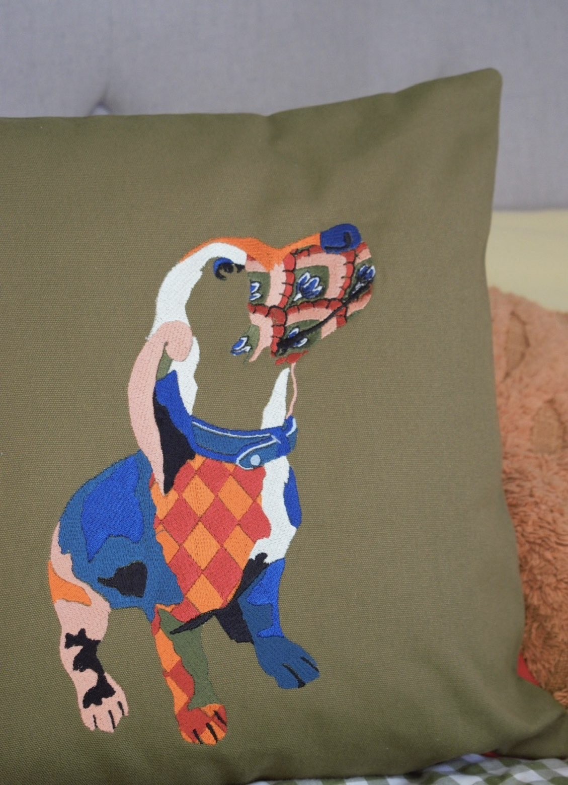 Bring warmth and personality to your home with this handcrafted embroidered spaniel cushion cover. Set against a soft green background, the charming spaniel design is brought to life through rich colour and intricate stitching, celebrating traditional craftsmanship with a contemporary edge. A perfect accent for sofas, armchairs or beds, this piece adds character and a playful elegance to any space.